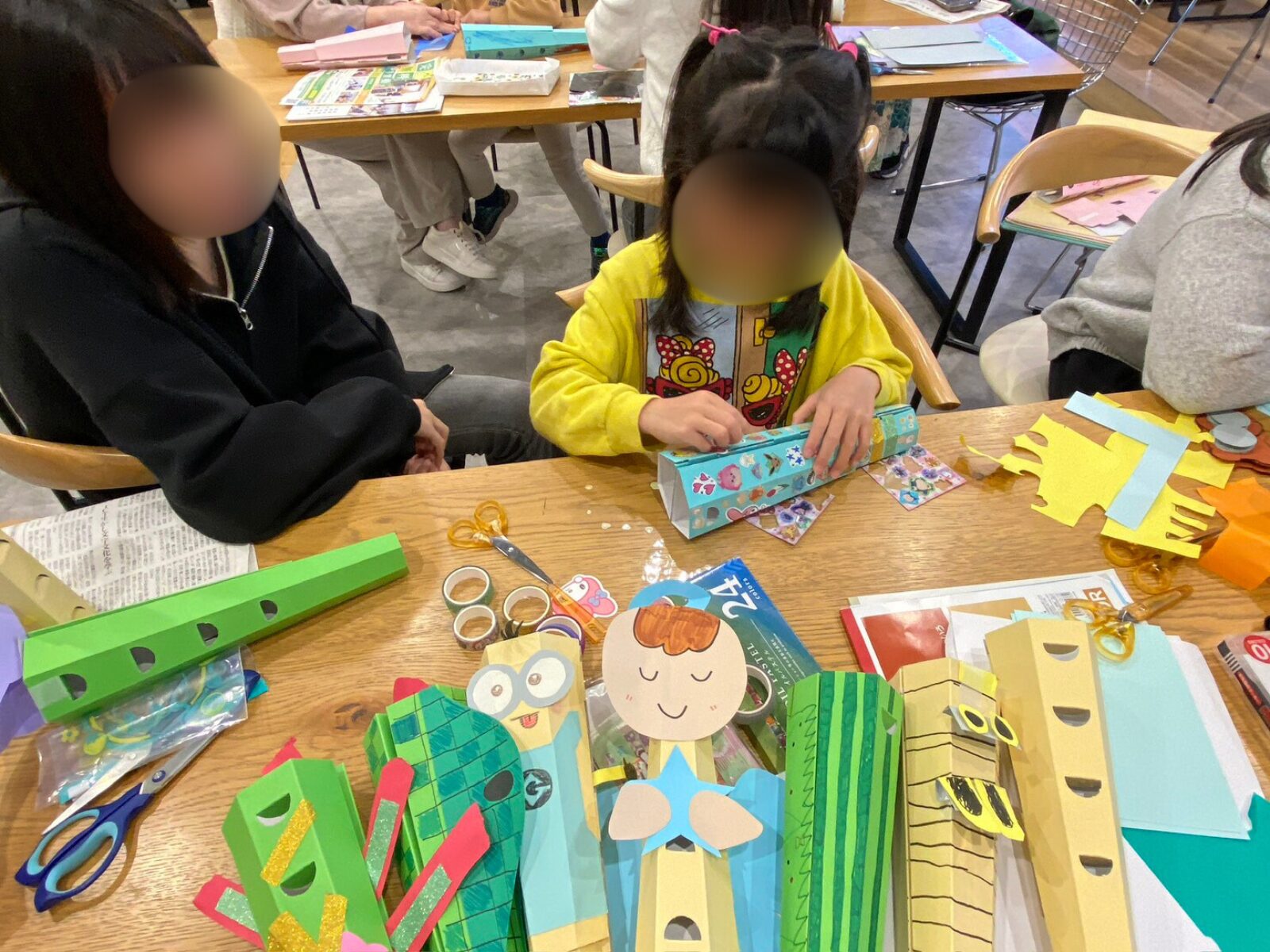 11月のあじあーと鶴橋本校では、みんなのマルシェに出展し、株式会社クラウンパッケージ様のご協力のもと「オリジナルのメガホン作り」を行いました。
